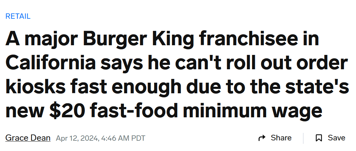 Few recent events have showcased the absurdity of how pay is discussed in our current system like California raising the minimum wage for fast food workers to $20/hr. Corporate media has responded by collectively losing its mind, and deciding to trot out one “small business owner” after another to say it’s simply impossible to pay people in accordance with the new law. These guys say they’ll be “forced” to automate jobs and fire workers and raise prices. But when we dig in just a little bit, a few key details are being left out of these stores. Let’s take one example.