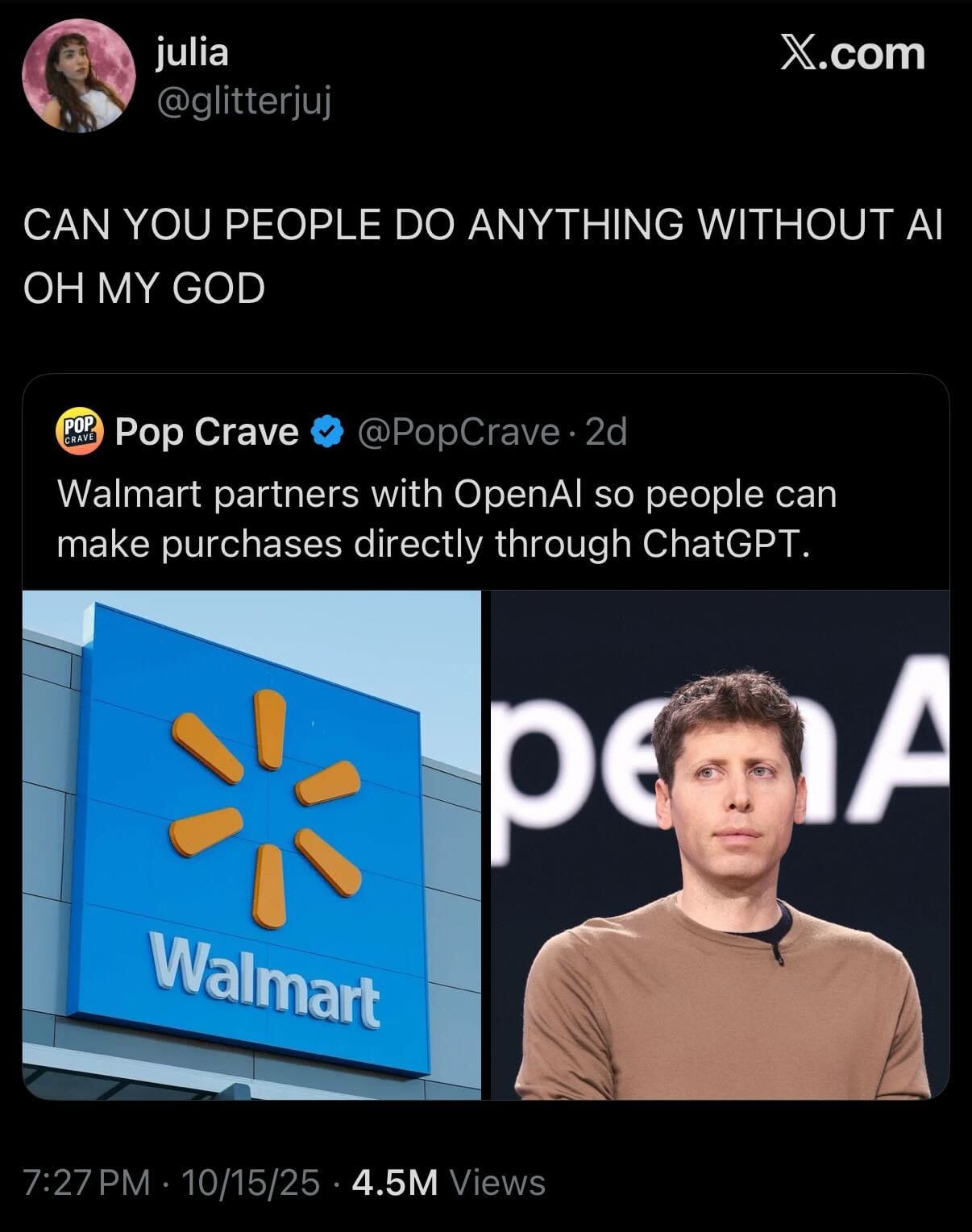Like the dramatic rise of Palantir, AI was a virtual non-entity 10 years ago. Now, it’s ubiquitous. Google, Meta, Microsoft — the biggest companies on Earth are deeply invested in AI, and for that reason they’re trying to shove the tech down our throats. It’s easy to blame individuals for using ChatGPT, Sora, and other AI products, but that misses the real problem. Nothing illustrates what’s happening quite like an examination of the following tweet: