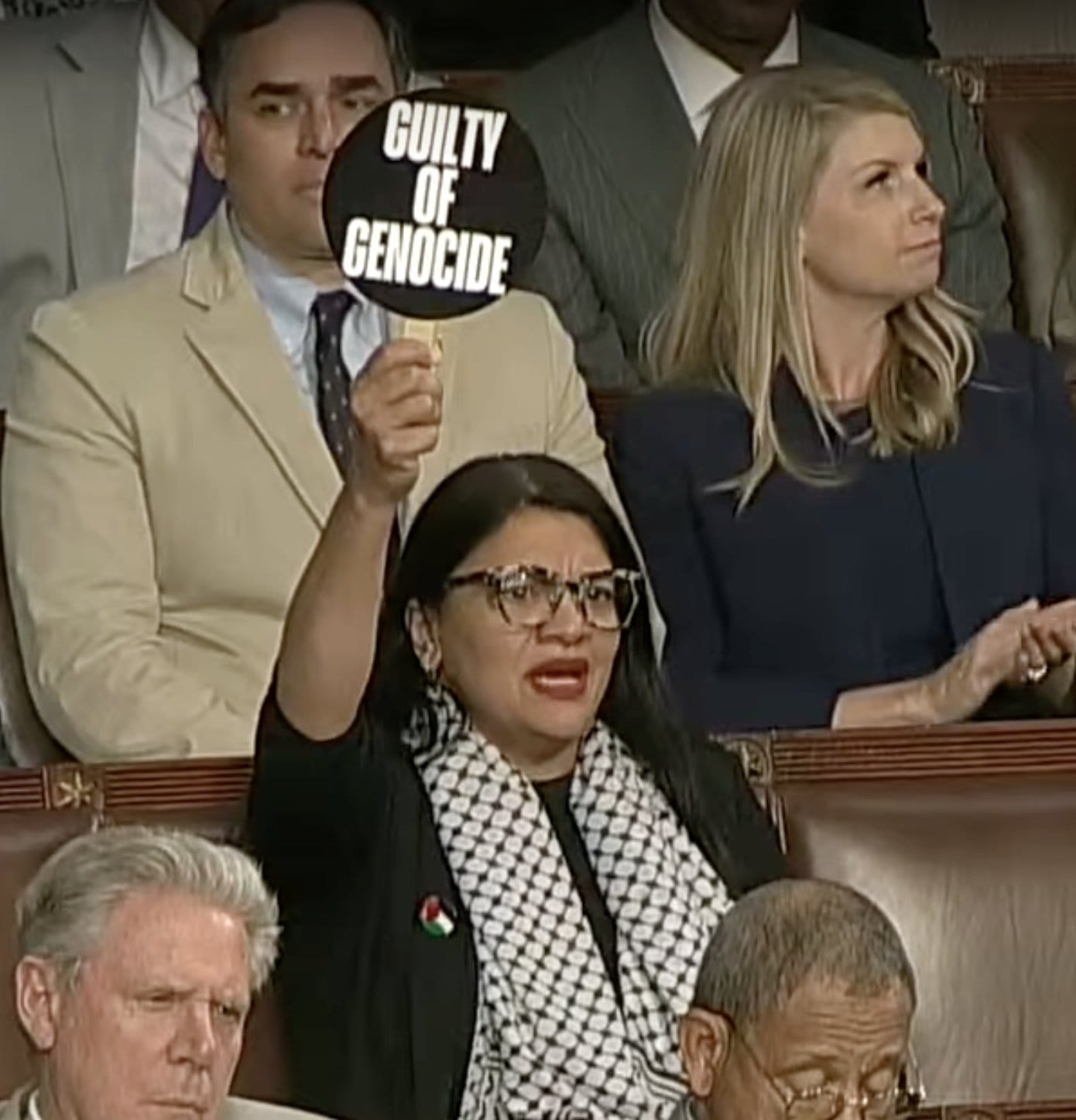 In other words, it was not only full of racism and horseshit, Netanyahu’s rant was also a foreign policy disaster. It was so bad that it brought together people ranging from Rashida Tlaib to Nancy Pelosi, united in condemnation. Pelosi took to Twitter, calling it, “by far the worst presentation of any foreign dignitary invited and honored with the privilege of addressing the Congress of the United States.” And Rashida Tlaib protested in the chamber itself, holding signs calling Netanyahu a war criminal, and accusing him of being guilty of genocide – both accurate accusations of course.
