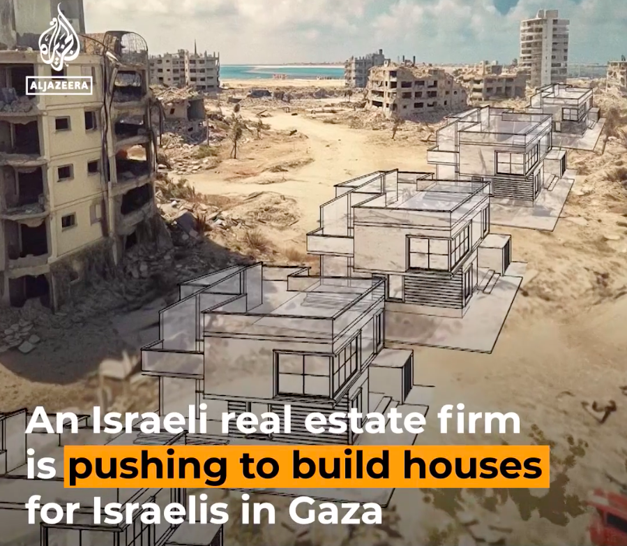 If we look we can see how this vision is sold to us. We can see how we’re told that we, the deserving, will benefit from a world structured atop the suffering of others. War is being sold to us as an investment in American industry and American jobs. Attacks on immigrants are being sold the way they’re always sold; your job will be protected, your family will be protected, we just need to squash and keep out these undesirables. I have recently been haunted by the very epitome, the encapsulation of this way of thinking. An Israeli firm is already promoting seaside housing in Gaza.