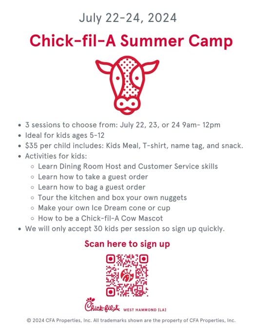 One local news segment gives us some disconcerting insights into the phenomenon of the fast-food summer camp. In the brief clip a mom, who is sending her daughter to the Chick-fil-A experience, explains that she and her family go to the chain every week, and therefore her daughter, “wanted her to learn kind of how things work and operate.” Then, when asked what her daughter Chloe is most excited about, this mom says, “Oh, she definitely likes to talk. So it's probably gonna be taking orders.” In the interview the woman also talks about how her niece attended the child-labor learning experience the year before, which added to her daughter’s desire to go spend part of a day working for Chick-fil-A while learning a few of the service industry ropes. And mom was happy to pay for the experience.