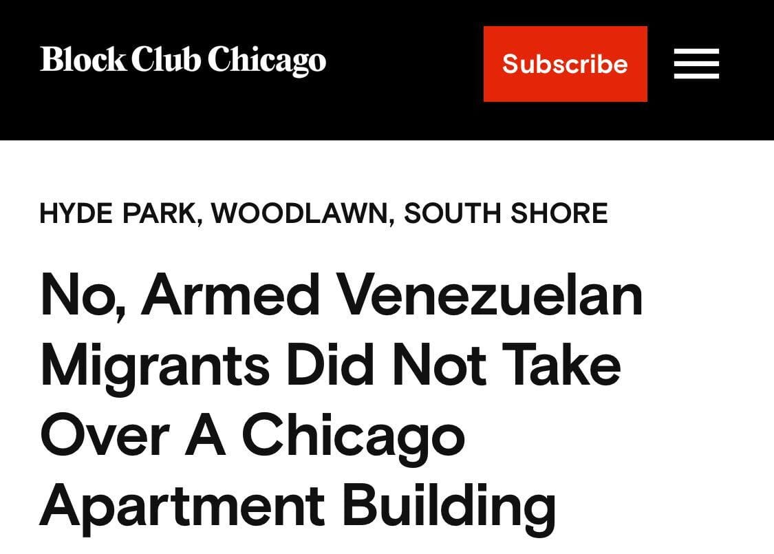 In Chicago, just like Aurora, viral videos and social media posts suddenly popped up, only to be debunked by local journalists. As Block Club Chicago, a local publication, writes “There is no evidence a group of migrants took over a Washington Park apartment complex Monday, a false claim that went viral on social media and was amplified by Elon Musk.” Another local journalist went over to the neighborhood and talked to folks living in and near the building. Amando Sanchez posted the videos of his conversations with residents and said, “The people we talked to seemed to really welcome migrants living in the building and stressed the migrants living there had not taken over the building.”